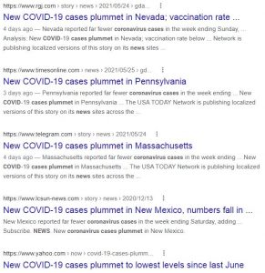 Now, of course, MSM (mainstream media) and the corrupt-to-the-core CDC, well they’re going to LIE as they always do and credit vaccines for the “plummeting” Covid-19 statistics, as you can find that word “plummet” conveniently spread across every fake news outlet in the country right now. It’s another ploy, a plot, a con, a trick to get as many people inoculated with the kill switch mRNA jabs. Plummet. Plummet. Plummet. Blah, blah, blah.